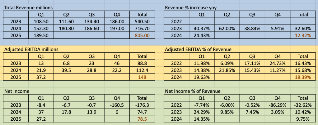 “For fiscal year 2025, the Company continues to expect revenue of between $790 million and $820 million, net income of between $74 million and $83 million, Non-GAAP adjusted EBITDA of between $143 million and $153 million, earnings per diluted share of between $2.61 and $2.92